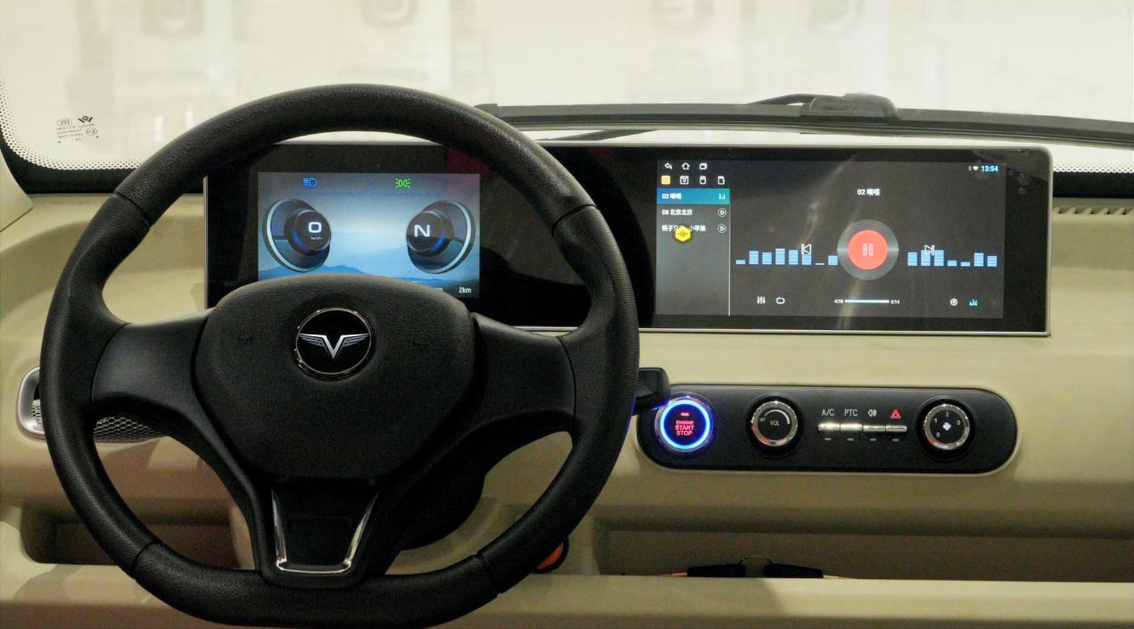 Tela sensível ao toque com sistema Android e ar-condicionado.